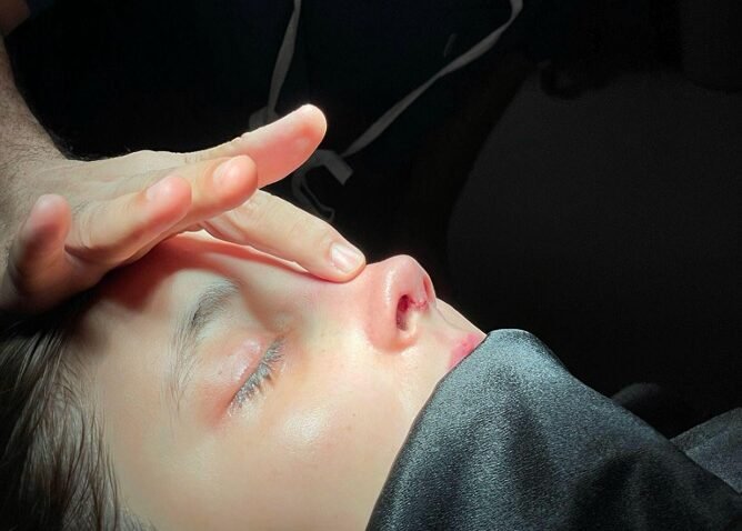 Rhinoplasty typically takes 4-6 hours. During the surgery, the nasal skin is separated from the bone and cartilage framework. The reshaping depends on the existing issue and the surgeon’s chosen technique. Finally, the skin is adapted to the new structure. Most ENT specialists prefer the open technique, which involves a small incision on the columella, the strip of tissue separating the nostrils. After surgery, a plaster cast is placed on the nose to maintain its new shape, and silicone splints are inserted to stabilize the septum.