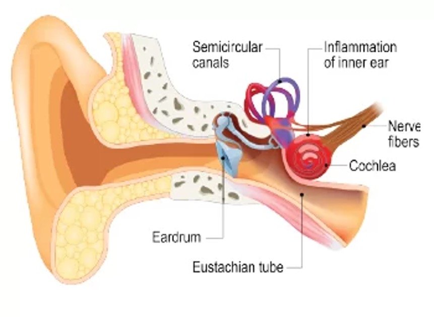 İşitme kaybı, sıklıkla yüksek frekanslarda başlar. Tinnitus denilen çınlama,uğultu şikayeti hemen hemen daima vardır.